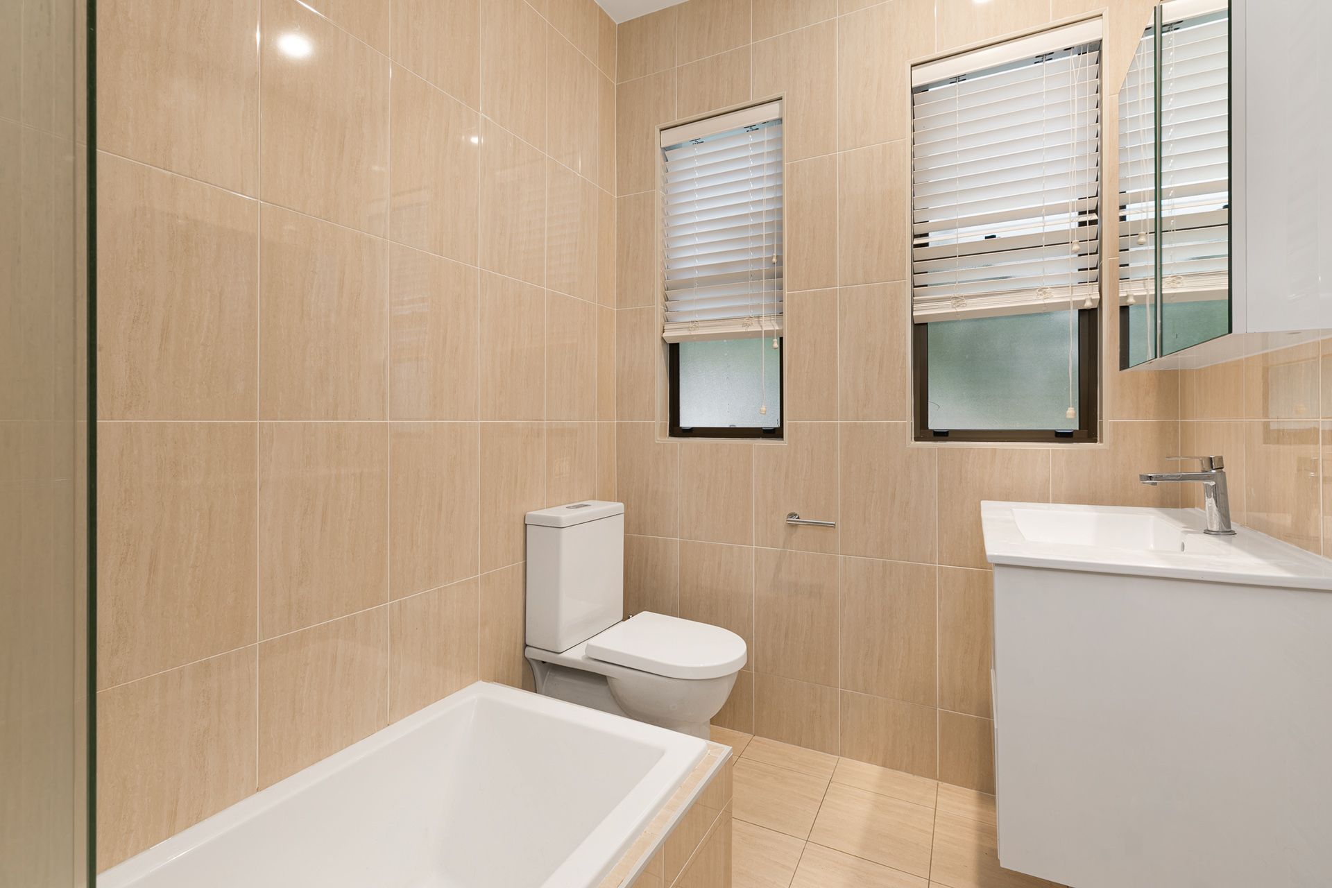 - Three bedrooms downstairs, two with built-in wardrobes