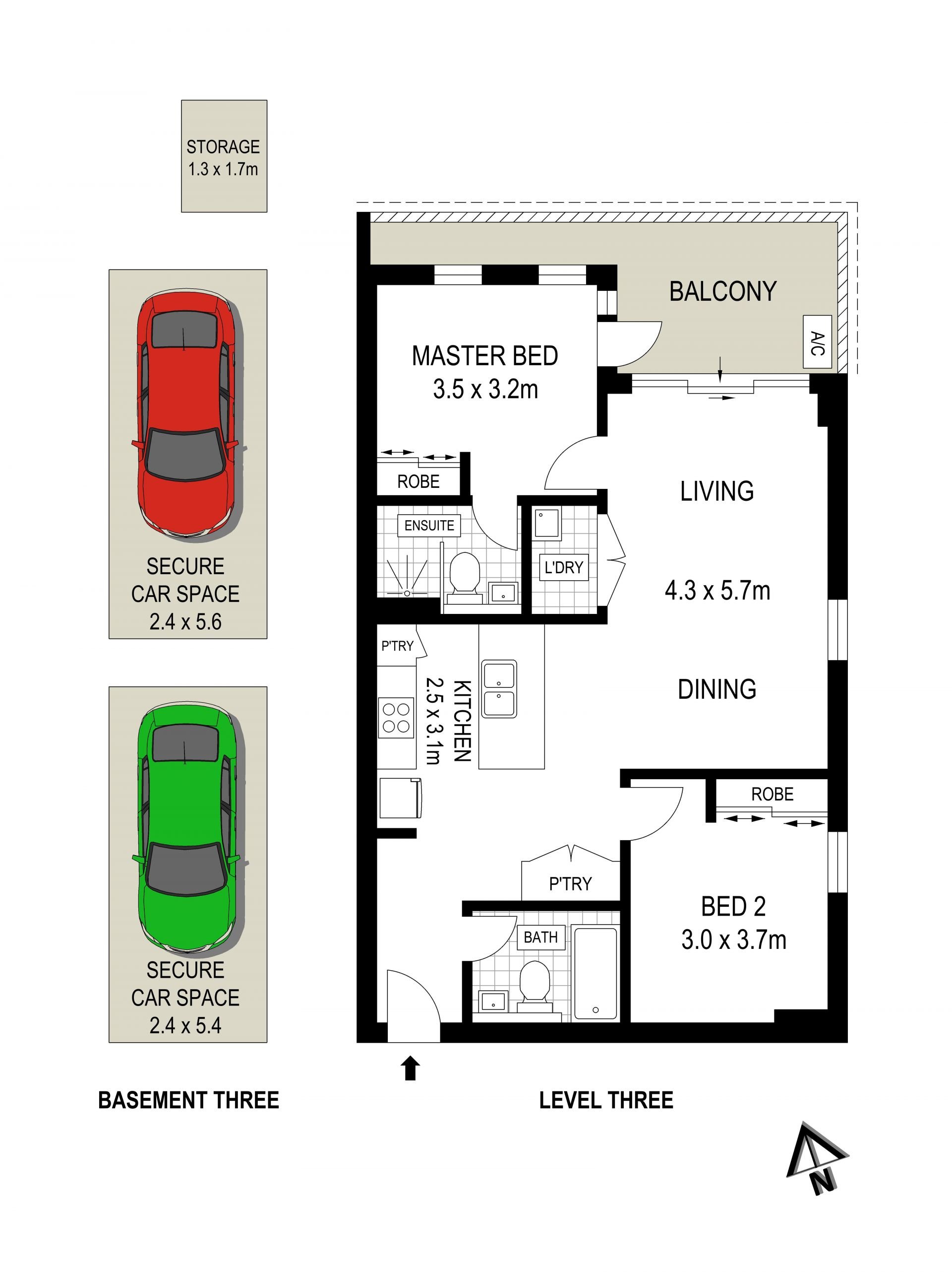 - Convenience of your own internal laundry, security car spaces and intercom
